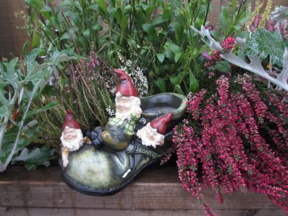 Garðskraut – 3 dvergar á skó (blómapottur)