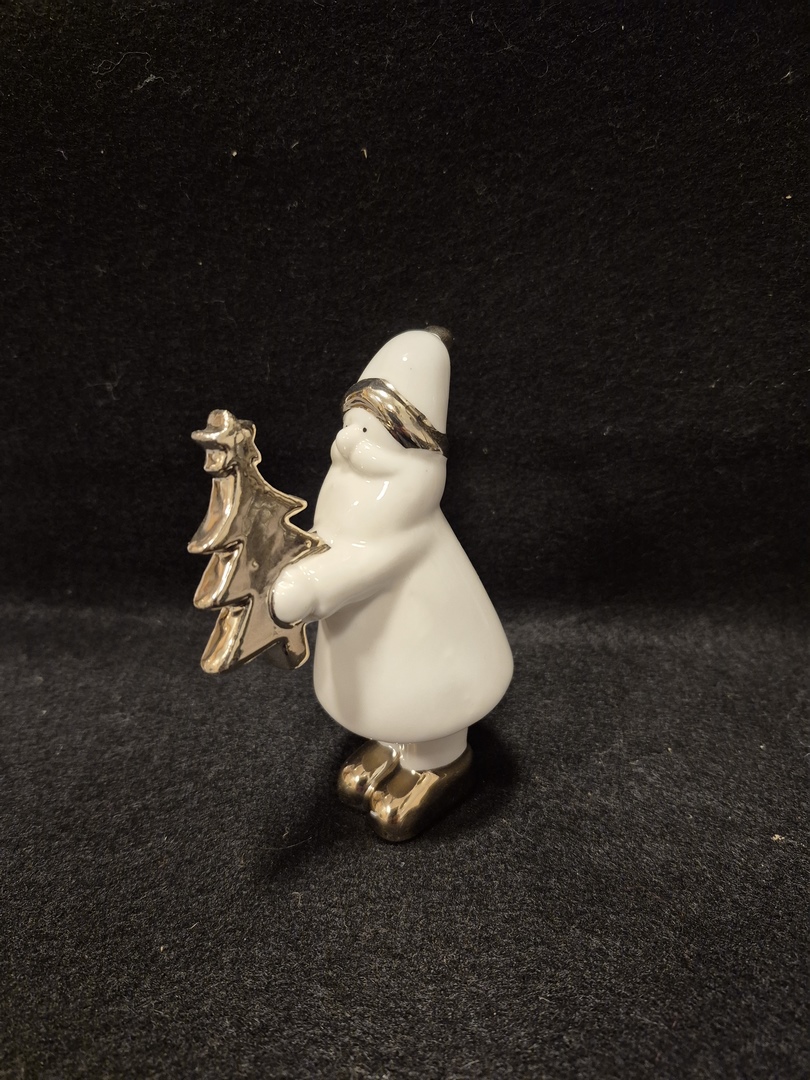 Jólavara – hvítur jólasveinn 12 sm, með gyllt jólatré