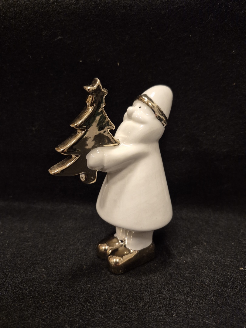 Jólavara – hvítur jólasveinn 12 sm, með gyllt jólatré