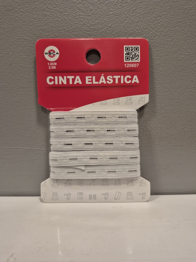 Teygja hvít 10 mm 2,5 m með hnappagötum