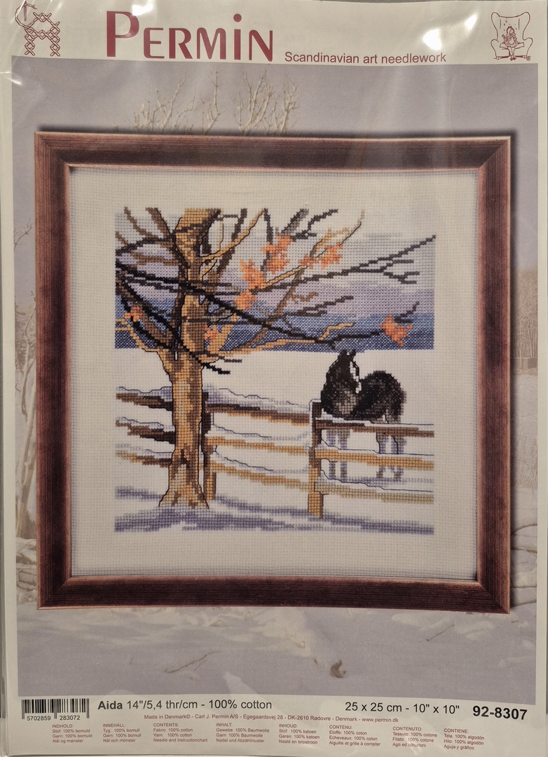 Jólaútsaumur – jólasveinn að veiða niður um ís