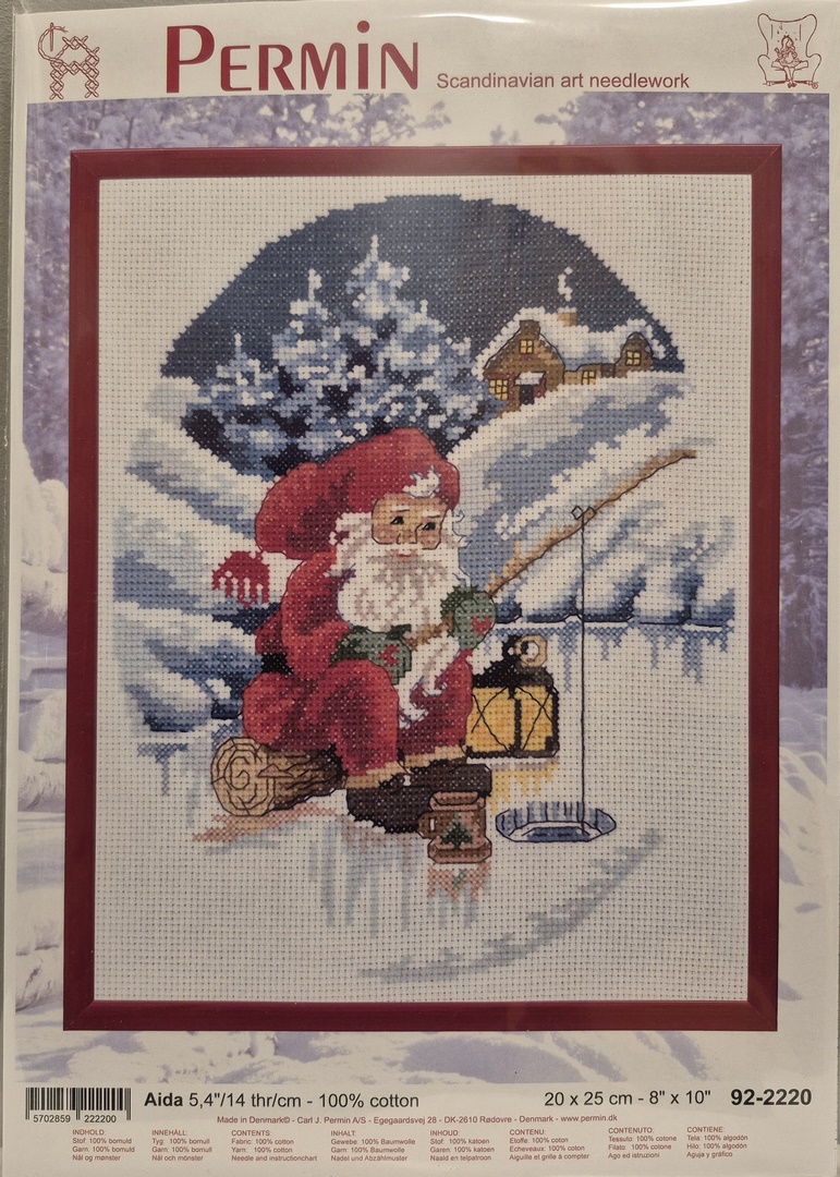 Jólaútsaumur – jólasveinn að veiða niður um ís